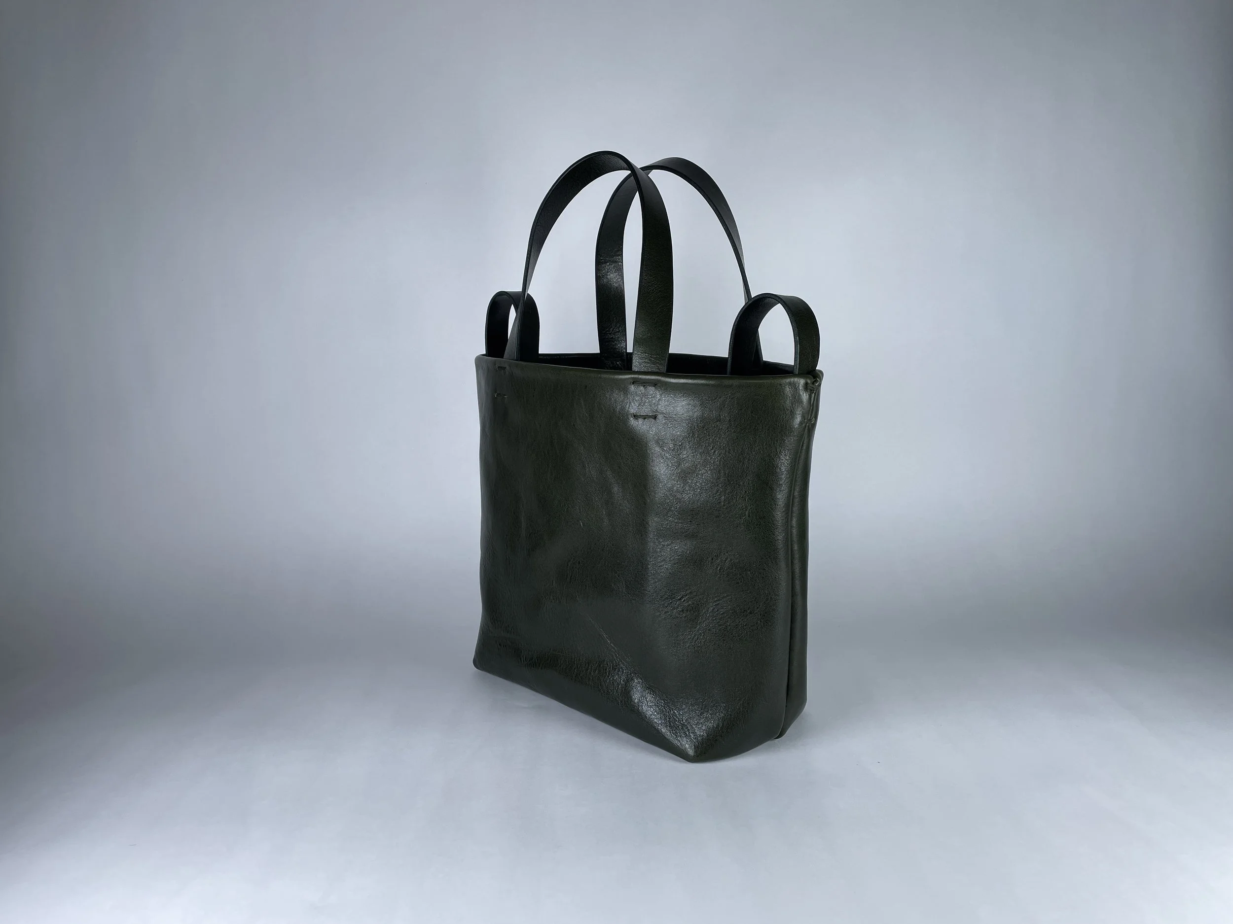 Crafted from premium Italian full-grain leather, this tote marries minimalist form with functional detail. The unlined interior delivers a luxury, authentic feel—complete with a single interior patch pocket for essentials. Fixed cross-body strap for versatile carry. Every stitch and edge is meticulously finished by the designer himself, making each piece a true limited edition. Please allow ample time for production, as each bag is handcrafted upon order.
