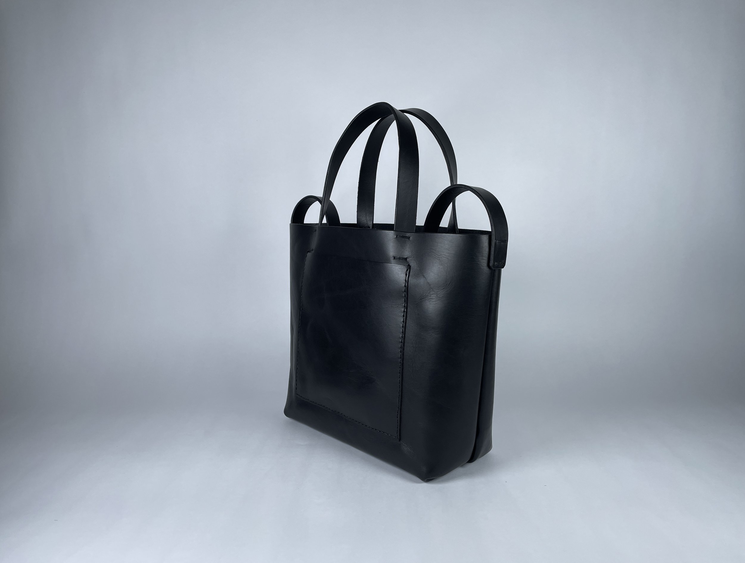 Crafted from premium Italian full-grain, vegetable-tanned drum-dye leather, this tote offers a stiff, durable structure that holds its shape through daily wear. The unlined interior exposes the leather’s raw character, while two exterior patch pockets provide effortless organization. Meticulously handcrafted by the designer himself, each stitch and edge is finished by hand, making every piece a true limited edition. Please allow ample time for production, as each bag is made to order.