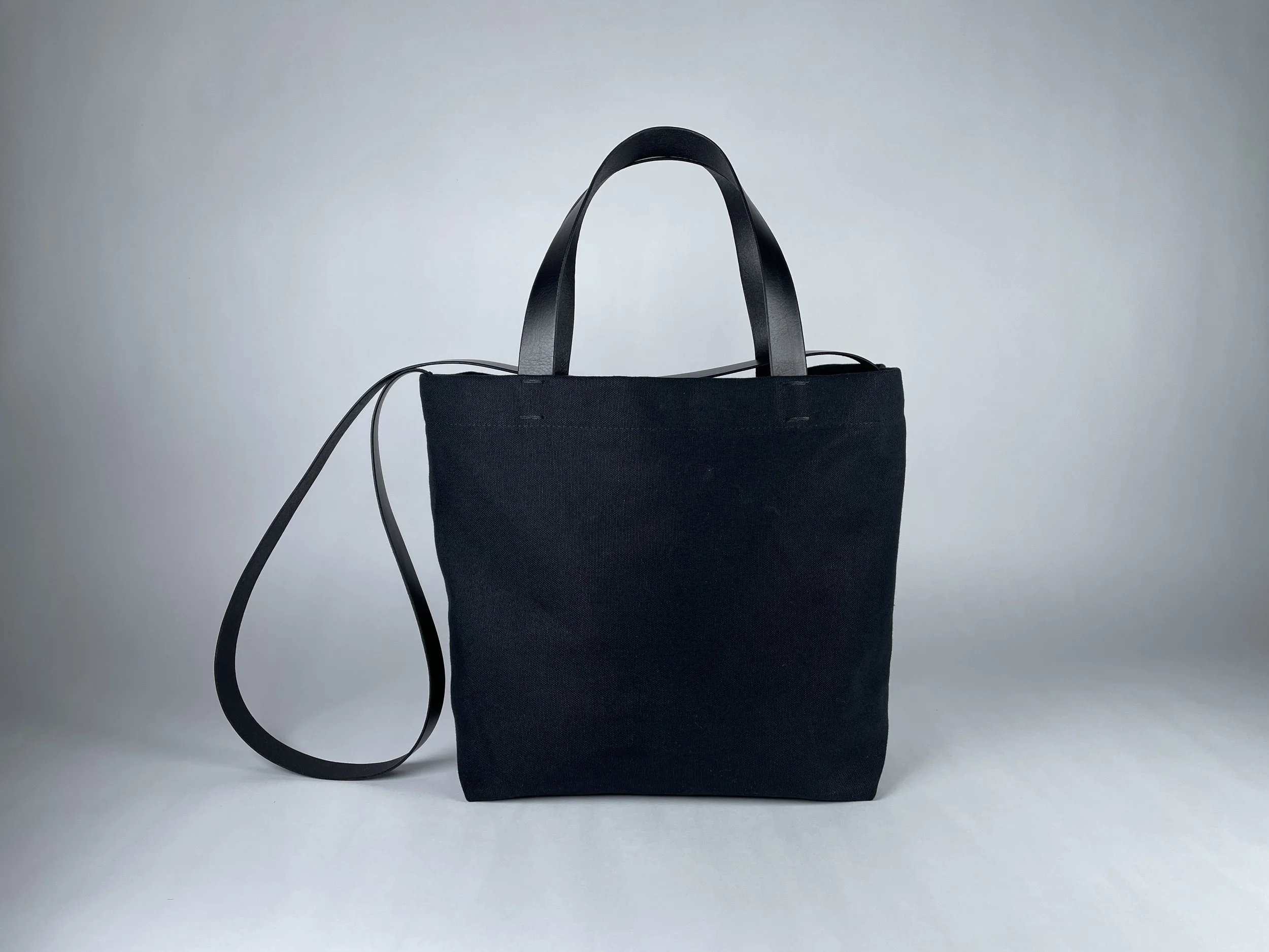 Crafted from 100% 18 oz cotton duck canvas, this tote is built for lasting strength and everyday use. The interior is fully lined in durable cotton and includes a single patch pocket to keep your essentials organized. High-quality matte black leather straps—featuring a fixed 42″ cross-body strap—ensure both comfort and style. Every stitch and edge is finished by the designer himself. Please allow ample time for production, as each piece is crafted to order.